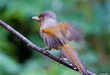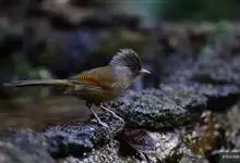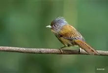 栗额斑翅鹛是噪眉科、斑翅鹛属中型鸟类,体长20-23厘米。头顶具浓密的羽冠,前额栗棕色,头顶灰褐色。上体棕褐色,两翅棕褐色具黑色横斑,翅基外缘有一黑斑,尾呈凸状,棕褐色具黑色横斑。下体棕褐色,…全部>>