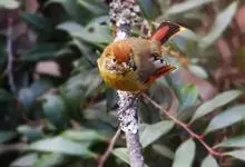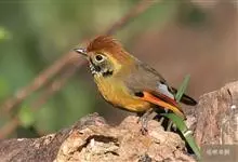 橙翅噪鹛:是噪鹛科、彩翼噪鹛属的中型鸟类,体长22-25厘米。头顶深葡萄灰色或沙褐色。上体灰橄榄褐色,外侧飞羽外翈蓝灰色、基部橙黄色,中央尾羽灰褐色,外侧尾羽外翈绿色而缘以橙黄色并具白色端斑。…全部>>