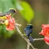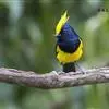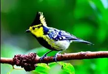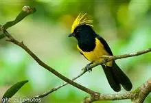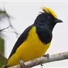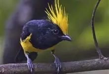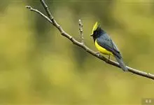 冕雀:共有4个亚种。体长20-21厘米,体重34-49克。具蓬松的黄色长型冠羽。雌鸟似雄鸟,但喉及胸深橄榄黄色,上体沾橄榄色。不会被误认的体大的黄色及黑色山雀。混群栖于原始林及次生林的林冠层,…全部>>