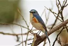 红胁蓝尾鸲俗名:蓝点冈子、蓝尾巴根子、蓝尾杰、蓝尾欧鸲。体型略小而喉白的鸲。特征为橘黄色两胁与白色腹部及臀成对比。雄鸟上体蓝色,眉纹白;亚成鸟及雌鸟褐色,尾蓝。…全部>>