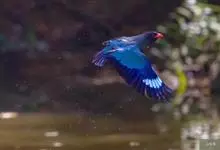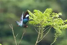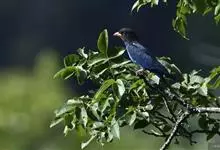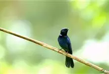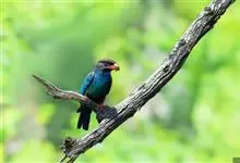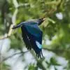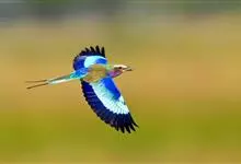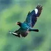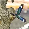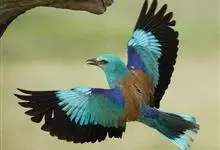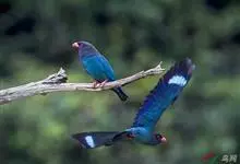 三宝鸟,是佛法僧目佛法僧科三宝鸟属中小型攀禽。成鸟通体为富有光泽的墨蓝绿色,头大而头顶扁平;头部色深近紫黑色,上体至尾泛有铜绿光泽;两翼有幽蓝金属光,初级飞羽黑褐色;羽基淡石青色,形成大块淡蓝,…全部>>
