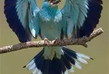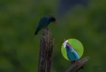三宝鸟,是佛法僧目佛法僧科三宝鸟属中小型攀禽。成鸟通体为富有光泽的墨蓝绿色,头大而头顶扁平;头部色深近紫黑色,上体至尾泛有铜绿光泽;两翼有幽蓝金属光,初级飞羽黑褐色;羽基淡石青色,形成大块淡蓝,…全部>>