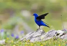 蓝大翅鸲是鹟科、大翅鸲属小型鸟类,体长19-21厘米。两翅尖长。雄鸟通体鲜紫蓝色具金属光泽。两翅和尾黑色。雌鸟上体灰褐色,头、颈、翕具棕白色纵纹,翅上有白色翅斑。虹膜暗褐色,嘴、脚黑色。…全部>>