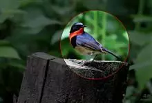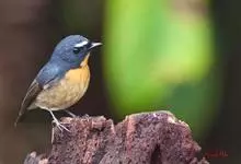 棕胸蓝姬鹟:属小型鸣禽,体长10-13厘米,体重6-10克,是一种体型很小的灰蓝及棕色鹟,雌雄羽色不同,雄鸟羽色艳丽,雌鸟羽色暗淡。雄鸟上体深蓝色,胸橙黄色,下腹灰白色。亚成鸟具褐色斑驳。…全部>>