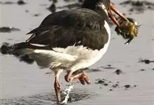 蛎鹬是鸻形目蛎鹬科蛎鹬属。蛎鹬的成鸟夏羽头、颈、胸和上体大部分为乌亮的黑色,腰到尾上覆羽白色,尾羽基部白色,端部黑色;翼上黑色,具有白横斑;下体胸部以下白色,翼下白色带黑缘;虹膜红色,啄和眼圈橘色,…全部>>