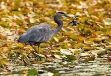 大蓝鹭是鹳形目鹭科的鸟类。共有5个亚种,体长137厘米。全身大部分羽毛呈灰蓝色羽毛,胸口和背部有丝状羽饰。枕部有两枚黑色长形羽毛形成的冠羽,悬垂于头后,状如辫子。…全部>>