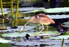 黄苇鳽是鹈形目鹭科苇鳽属鸟类。成鸟顶冠黑色;上体淡黄褐色,下体黄色,下颈基部和上胸具黑褐色块斑;黑色飞羽与黄白色覆羽成强烈对比;虹膜金黄色;眼先裸露呈黄绿色;喙峰黑褐色,…全部>>