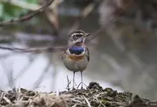 蓝点颏亦称“蓝喉歌鸲”,通称蓝靛颏儿。身体大小和麻雀相似,体长12-13厘米,体重17-18克。头部、上体主要为土褐色。眉纹白色。尾羽黑褐色,基部栗红色。颏部、喉部辉蓝色,下面有黑色横纹。下体白色。…全部>>