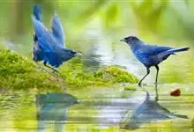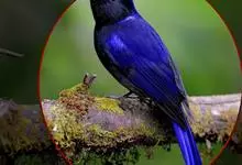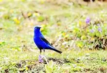蓝大翅鸲是鹟科、大翅鸲属小型鸟类,体长19-21厘米。两翅尖长。雄鸟通体鲜紫蓝色具金属光泽。两翅和尾黑色。雌鸟上体灰褐色,头、颈、翕具棕白色纵纹,翅上有白色翅斑。虹膜暗褐色,嘴、脚黑色。…全部>>