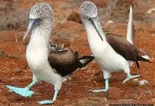 蓝脚鲣鸟,是一种大型的热带海鸟。平均身长80厘米,体重约1.5千克。雌性比雄性稍大些。最引人注目的是它们长着一对蓝色的大脚。嘴粗壮,长直而尖,近似圆锥形,上下嘴缘均呈锯齿状,喉囊发达,有贮存作用。翅…全部>>