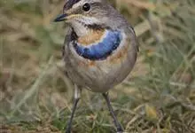 蓝点颏亦称“蓝喉歌鸲”,通称蓝靛颏儿。身体大小和麻雀相似,体长12-13厘米,体重17-18克。头部、上体主要为土褐色。眉纹白色。尾羽黑褐色,基部栗红色。颏部、喉部辉蓝色,下面有黑色横纹。下体白色。…全部>>
