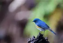 红胁蓝尾鸲俗名:蓝点冈子、蓝尾巴根子、蓝尾杰、蓝尾欧鸲。体型略小而喉白的鸲。特征为橘黄色两胁与白色腹部及臀成对比。雄鸟上体蓝色,眉纹白;亚成鸟及雌鸟褐色,尾蓝。…全部>>
