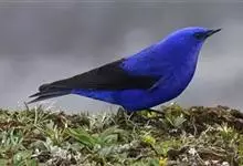 蓝大翅鸲是鹟科、大翅鸲属小型鸟类,体长19-21厘米。两翅尖长。雄鸟通体鲜紫蓝色具金属光泽。两翅和尾黑色。雌鸟上体灰褐色,头、颈、翕具棕白色纵纹,翅上有白色翅斑。虹膜暗褐色,嘴、脚黑色。…全部>>
