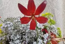 山丹是百合科百合属的多年生草本植物。鳞茎卵形或圆锥形,鳞片长圆形或长卵形,白色;叶散生茎中部,线形,边缘有乳头状突起;花单生或数朵成总状花序,花鲜红色,常无斑点,花被片反卷,…全部>>