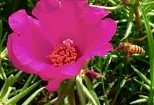 大花马齿苋:一年生草本,高10-30厘米。茎平卧或斜升,紫红色,多分枝,节上丛生毛。叶密集枝端,较下的叶不规则互生,叶片细圆柱形,无毛。花单生或数朵簇生枝端,直径2.5-4厘米,…全部>>