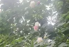 木芙蓉,锦葵科木槿属落叶灌木或小乔木。小枝上有细绒毛;叶片为卵状心形,托叶为披针形,常早落;花单生,花萼为钟形,花冠初为白色或淡红色,后逐渐变为深红色;果实为扁球形,有淡黄色的毛附着。花期8到10月。…全部>>