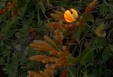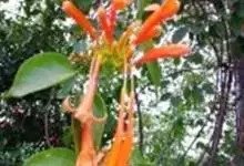 炮仗藤 Miers)紫葳科炮仗藤属藤本植物。小枝顶端有丝状卷须;叶对生,卵形;花萼钟状,橙红色,长椭圆形,花丝丝状,花药叉开;果瓣为革质,舟状。花期1-6月。初夏红橙色的花朵累累成串,状如鞭炮,…全部>>