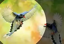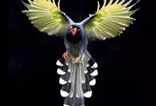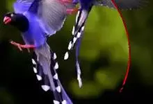 台湾蓝鹊:体长64至65厘米,翼展18至21厘米,尾长约40厘米,尾羽长占了总体长的三分之二。头、脸、颈、喉、胸都是黑色,黄色的眼珠包围黑色的瞳孔,鲜红色的鸟喙、双脚,…全部>>