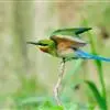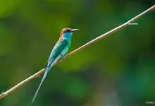 蓝颊蜂虎:是蜂虎科、蜂虎属的鸟类,共有2个亚种。体长27-33厘米,翼展46-49厘米,体重38-50克。嘴形细长而下弯,先端尖,…全部>>