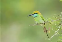 绿喉蜂虎是佛法僧目、蜂虎科的小型鸟类,共有9个亚种。身长22-25厘米,翼展29-30厘米,体重15-20克。喉绿色,额部、头顶至上背为锈红色,其余上体均为亮绿色。中央尾羽延长且端段狭细,…全部>>