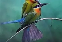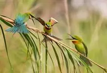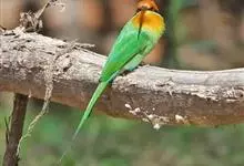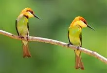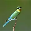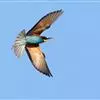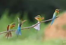 蓝颊蜂虎:是蜂虎科、蜂虎属的鸟类,共有2个亚种。体长27-33厘米,翼展46-49厘米,体重38-50克。嘴形细长而下弯,先端尖,…全部>>