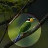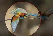 栗喉蜂虎是蜂虎科蜂虎属的鸟类。有热带鸟类羽毛艳丽的特征:喉部是栗红色的,黑色的过眼纹,翅膀和背部是绿色的,尾翼是蓝色的,飞行时翅膀下面的羽毛是橙黄色的,在阳光的照射下,它们全身闪烁着金属般的艳丽光泽,…全部>>