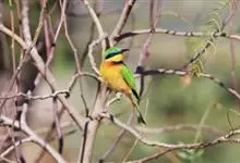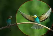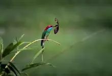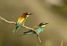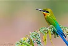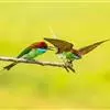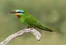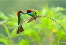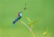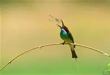 蓝颊蜂虎:是蜂虎科、蜂虎属的鸟类,共有2个亚种。体长27-33厘米,翼展46-49厘米,体重38-50克。嘴形细长而下弯,先端尖,…全部>>