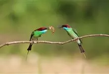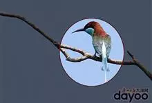 栗喉蜂虎是蜂虎科蜂虎属的鸟类。有热带鸟类羽毛艳丽的特征:喉部是栗红色的,黑色的过眼纹,翅膀和背部是绿色的,尾翼是蓝色的,飞行时翅膀下面的羽毛是橙黄色的,在阳光的照射下,它们全身闪烁着金属般的艳丽光泽,…全部>>