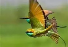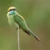 绿喉蜂虎是佛法僧目、蜂虎科的小型鸟类,共有9个亚种。身长22-25厘米,翼展29-30厘米,体重15-20克。喉绿色,额部、头顶至上背为锈红色,其余上体均为亮绿色。中央尾羽延长且端段狭细,…全部>>