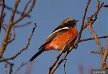 红背红尾鸲是鹟科、红尾鸲属小型鸟类,体长14-17厘米。雄鸟前额、头顶至后颈灰色或浅蓝灰色,背、腰、尾上覆羽和下体棕红或锈红色,两翅黑褐色,翅上有大块白斑极为醒目,眼和眼以下脸颊有一大块黑斑,…全部>>