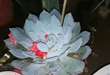 蓝石莲是景天科、拟石莲花属的多肉植物。茎部粗壮,成熟植株茎部木质化。叶片莲座型密集排列,株径不会很大,叶片相对较薄,常年绿色,表面布有白色粉末,中部凹陷,呈倒水滴状。叶尖较尖,叶缘光滑无褶皱,…全部>>