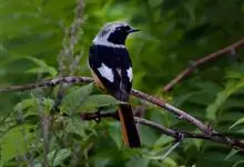 北红尾鸲是雀形目鸫亚科红尾鸲属的一种鸟类。北红尾鸲体长13—15厘米。雄鸟头顶至背石板灰色,下背和两翅黑色,具明显的白色翅斑;腰、尾上覆羽和尾橙棕色;前额基部、头侧、颈侧、颏喉和上胸黑色,…全部>>