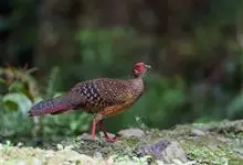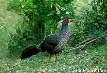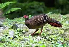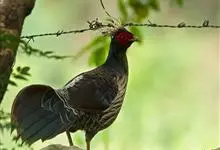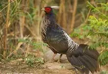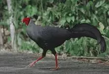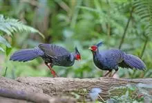 黑鹇是鸡形目雉科目鹇属鸟类,又称鸬雉、黑鸡。体型中等。雄鸟上体黑褐色,背羽具黑紫色金属光泽;头顶具黑羽冠;脸部裸皮呈红色,散生稀疏黑色纤羽;尾长而侧扁,中央两对尾羽红褐色,…全部>>