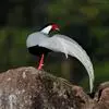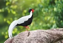 白鹇,是鸡形目雉科鹇属的一种留鸟。雄鸟上体白色并具黑色纹,下体黑色,头顶具黑色长羽冠,尾白而长;雌鸟体型较小,以橄榄褐色为主,下体具白色或皮黄色细纹;虹膜褐色,眼周具红色裸皮,喙黄色,脚鲜红色。…全部>>