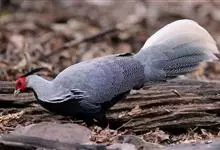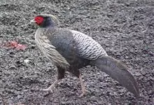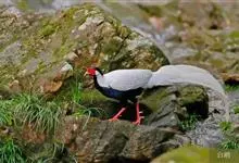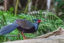蓝鹇是雉科、鹇属一种大型雉类。体长50-80厘米。雄鸟头颈黑色,羽冠白色,有时杂以黑斑;脸红色,额部肉冠和脸部肉垂亦为红色;后颈和颈侧蓝黑色;肩赤红色;翅上覆羽及外侧次级飞羽黑色,…全部>>