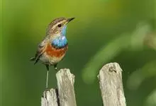 蓝点颏亦称“蓝喉歌鸲”,通称蓝靛颏儿。身体大小和麻雀相似,体长12-13厘米,体重17-18克。头部、上体主要为土褐色。眉纹白色。尾羽黑褐色,基部栗红色。颏部、喉部辉蓝色,下面有黑色横纹。下体白色。…全部>>