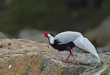 蓝马鸡是珍稀名贵的禽类,羽毛美丽,可作装饰用,头侧绯红,耳羽簇白色、突出于颈部顶上,通体蓝灰色,中央尾羽特长而翘起。尾羽披散下垂如马尾,故名蓝马鸡。喜欢生活在高山寒冷地区,…全部>>