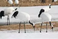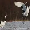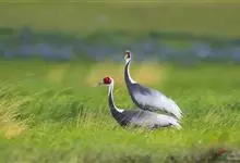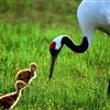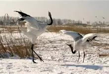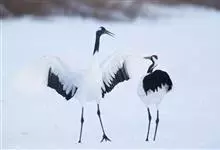 丹顶鹤:是鹤科、鹤属的一种大型涉禽,体长120-160厘米。颈、脚较长,通体大多白色,头顶鲜红色,喉和颈黑色,耳至头枕白色,脚黑色,站立时颈、尾部飞羽和脚黑色,头顶红色,…全部>>