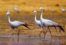 蓝鹤是非洲所拥有的6种鹤之一。它高雅而美丽的外貌给人留下深刻的印象。它有多层柔美而悠长的羽毛,由此构成特别长的“内翅”,乍一看,会使人以为它有很长的尾翼,其实不然。大多数鹤类在头部和脸部都会有艳丽的…全部>>