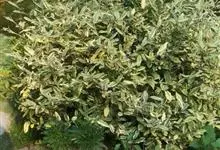 金边胡颓子是胡颓子科、胡颓子属植物。常绿灌木,高1—2米,树冠圆形开展,枝叶稠密,单叶互生,革质有光泽,椭圆形至长椭圆形,叶背面银白色并有锈褐色斑点,叶面深绿色,叶边缘镶嵌金黄色条状斑,…全部>>