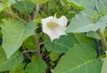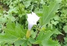 曼陀罗,茄科曼陀罗属一年生大型草本植物,全株光滑。有臭气;叶呈广卯形,边缘具不规则波状浅齿裂;花单生于枝杖间或叶腋,直立,有短梗;花萼是筒状裂片三角形,颜色为白色或淡紫色;果实为蒴果卵状,…全部>>