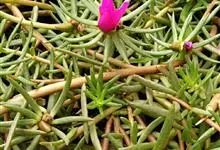 大花马齿苋:一年生草本,高10-30厘米。茎平卧或斜升,紫红色,多分枝,节上丛生毛。叶密集枝端,较下的叶不规则互生,叶片细圆柱形,无毛。花单生或数朵簇生枝端,直径2.5-4厘米,…全部>>