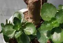 江户紫,景天科伽蓝菜属草本植物,是多年生草本花卉。花白色,但栽培中很少能见到花,常作观叶植物栽培。…全部>>
