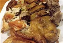 叫花鸡又称常熟叫化鸡、煨鸡,是江苏省常熟市的一道传统名菜,它的做法是先给处理好鸡刷上料汁,再用荷叶、猪网油及黄泥土层层包裹,最后丢进柴火堆中煨熟。叫花鸡的制法与周代“八珍”之一的“炮豚”相似,…全部>>