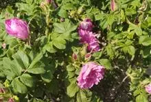 玫瑰:蔷薇科、蔷薇属的灌木;株高达2米;茎粗壮,丛生;小枝密生线毛,针刺和腺毛,有皮刺,淡黄色,被绒毛;小叶5枚,椭圆形或倒卵形,长1.5-4.5厘米,有尖锐锅齿,上面无毛,叶脉下陷,有褶皱,…全部>>