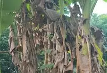 香蕉’),芭蕉科芭蕉属多年生草本植物,植株丛生,有匐匍茎;假茎浓绿有黑色斑点;叶片长圆形,上面为深绿色,无白粉,下面浅绿色;花朵为乳白色或淡紫色;果实呈弯曲的弓状,有棱,果皮为青绿色,…全部>>