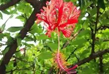 吊灯扶桑 Hook. f.)为锦葵科木槿属的常绿灌木。高达3米;小枝常下垂;叶椭圆形或长圆形,先端尖或短渐尖,基部楔形;花梗细,无毛或具纤毛,中部具节;蒴果长圆柱形;花期全年。因似灯笼高挂,…全部>>