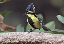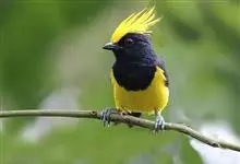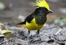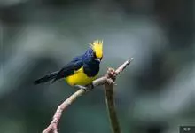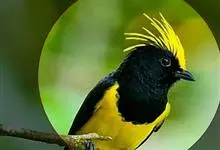 冕雀:共有4个亚种。体长20-21厘米,体重34-49克。具蓬松的黄色长型冠羽。雌鸟似雄鸟,但喉及胸深橄榄黄色,上体沾橄榄色。不会被误认的体大的黄色及黑色山雀。混群栖于原始林及次生林的林冠层,…全部>>