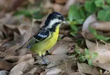 黄腹山雀是雀形目山雀科山雀属鸟类。虹膜褐色或暗褐色;嘴蓝黑色或灰蓝黑色;头、喉胸斑黑色,颊斑、颈后斑白色;上体蓝灰色,腰银白色;翼具两排白色点斑;下胸、腹鲜黄色;尾黑色,…全部>>