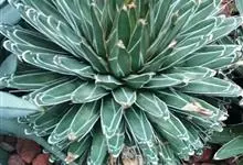皇后龙舌兰是天门冬科、龙舌兰属多年生草本多浆植物。无主茎,叶丛生,莲座状,株幅40厘米。叶较多,先端较细,三棱形,腹面扁平,背面圆形呈微龙骨凸起,长10-30厘米,宽2.5-7.5厘米,厚肉质硬,…全部>>
